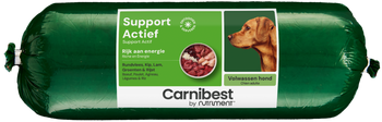 Deze voeding is zeer geschikt voor honden die prestaties moeten leveren. Denkende aan Border Collies in training, politiehonden, sledehonden en windhonden. Tevens is Support Actief ideaal voor honden die herstellende zijn van operaties en ziekten. Honden met ondergewicht kunnen met dit voer weer zeer snel op hun normale gewicht worden gebracht. Support Actief is tevens zeer geschikt voor zogende teven. Voor pups en drachtige honden is deze voeding niet geschikt in verband met het hogere energiegehalte, vanaf 12 maanden kan Support Actief gegeven worden aan jonge honden. Bevat: vers rundvlees, verse kip, rijst, fijngemalen groenten, koudgeperste plantaardige olie, natuurlijke vitaminen en mineralen.