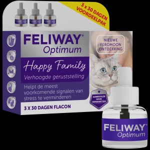 Anti-stress product voor katten op basis van een uniek feromonencomplex.(FPhc-feromoon). FELIWAY Optimum helpt katten op natuurlijke wijze om te gaan met stresssituaties, stopt ongewenst kattengedrag zoals sproeien en krabben, zorgt voor een vermindering van spanningen en conflicten tussen meerdere katten in huis en zorgt een harmonieuze relatie tussen kat en eigenaar. 1 navulling werkt 1 maand.