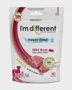 Gemaakt van volledig natuurlijke hoogwaardige eiwitten, met meer dan 90% everzwijnvlees van menselijke kwaliteit. De snoepjes zijn voorzichtig gevriesdroogd om alle smaak en natuurlijke voedingsstoffen te behouden. Daarnaast bevatten ze een speciale mix van rode vruchten die van nature rijk zijn aan antioxidanten, om het ideale welzijn van uw hond te ondersteunen. Ideaal als gezonde beloning. Ook perfect voor huisdieren met allergieën of voedselgevoeligheden en ook voor moeilijke eters.