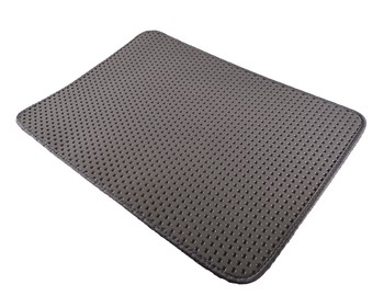 Het ontwerp is voorzien van een dubbele laag, één voor het opvangen van kattengrind van de kattenpootjes en kattenbak, en een tweede laag om de vloer schoon te houden.