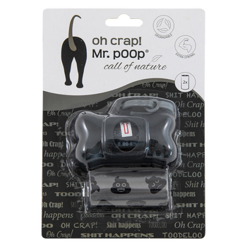 Mr.poop oh crap! houder zwart+2 rolletjes-grijs/zwart motief