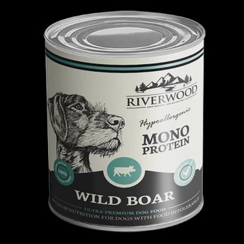 Riverwood mono-proteïne wildzwijn is een natvoer voor de hond, dat uitsluitend bestaat uit wildzwijn vlees. Omdat dit natvoer slechts één proteïne (eiwit) bron bevat, is het bij uitstek zeer geschikt voor honden met een voedselintolerantie of voedselallergie, en kan het worden ingezet bij/als een eliminatie dieet.
