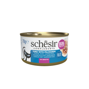 Het recept is gebaseerd op echte filets van heerlijke tonijn en wordt nog aantrekkelijker gemaakt door een topping van smakelijke sardientjes. Gekookt in zijn eigen vloeistof voor katten die van natuurlijke smaak en een meer vloeibare consistentie houden.