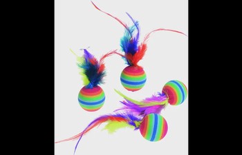 Deze toffe bal met rainbow look is perfect voor jouw kat! Hij schiet overal naartoe en stimuleert het jachtinstinct. Met veren voor extra speelplezier. Inclusief 4 stuks in een handig zakje. Gegarandeerd urenlang speelplezier!