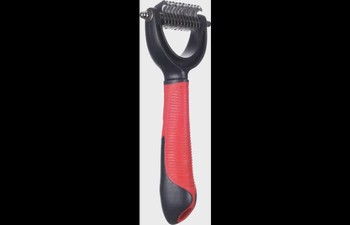 - De geronde tanden dunnen de bovenvacht uit maar houden de ondervacht intact