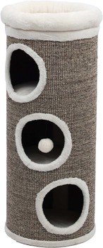 Deze krabton is de ideale combinatie tussen een krabgelegenheid en een slaapplaats. Dit product is namelijk voorzien van maar liefst 4 slaapplekken. 3 gaten waar uw kat zich heerlijk in kan terug trekken voor wat extra privacy en een slaapplaats bovenop de krabton, die ook nog eens voorzien is van een ultrazachte comfortabele pluche rand, die zorgt voor extra comfort tijdens het welverdiende uitrustmoment. De met sisal bekleedde buitenzijde van dit product geeft uw kat voldoende gelegenheid zijn of haar nagels te scherpen om zo zijn natuurlijke krab behoefte te stimuleren. Een van de slaapplaatsen is ook voorzien van een balletje met elastiek, waar uw kat naar hartenlust mee kan spelen. Wordt geleverd in de afmeting 95x38x38cm in de kleur desert