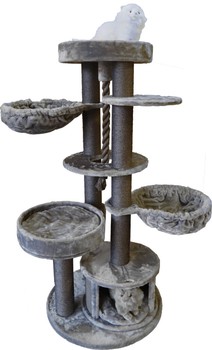 Boony krabpaal Ihotze is een stevig, robuust, origineel multi-functioneel meubel. Aan de bovenkant van de hoogste krabpaal bevindt zich een heerlijke comfortabele slaapplaats met een pluche kussentje. Uw kat kan hier komen door te klimmen en springen via de trapsgewijze plateaus, schuilplaatsen, slaapmanden en klimtouw. De paal heeft meerdere plekken waar uw kat naar hartenlust zijn nagels kan onderhouden. Krab-, speel-, klim- en slaapplezier ineen!!! Maximale hoogte 155 cm, verkrijgbaar in de kleurcombinatie grijs/antraciet. Verpakt in dozen met afbeelding erop.