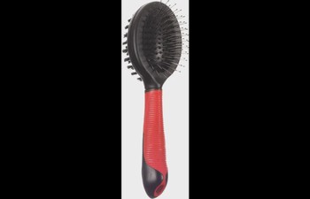 Deze kleine borstel met handvat is perfect voor het verzorgen van je hond. De metalen pinnen met plastieken uiteinden ontwarren knopen zonder te trekken en masseren de huid voor een betere bloedcirculatie. De borstelharen maken de vacht zacht en glanzend. Geschikt voor honden met korte of lange vacht. Het rubberen handvat zorgt voor een betere grip.