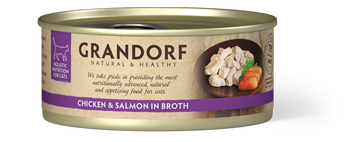 Kippenborst (65%), Zalmfilet (10%), Eigen bouillon (24%), Aardappel (1%).