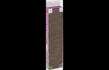 Een rechthoekig krabkarton, inclusief een zakje catnip voor extra speelplezier en een ideaal krabalternatief.