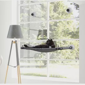 - Op het raam gemonteerde hangmat biedt katten een uitzicht op de buitenwereld