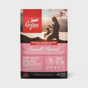 Houd je hond in topconditie met uiterst voedzame eiwitrijke voeding. Je kleine hond heeft specifieke voedingsbehoeften en heeft Biologically Appropriate voeding nodig om gezond te blijven. ORIJEN Small Breed is speciaal ontwikkeld voor kleinere honden en bevat voedzame eiwitten op basis van kip en kalkoen, in het wild gevangen vis en kwartel in een unieke brokvorm die ze gemakkelijker kunnen eten. De voeding bevat de meest voedzame en sappige delen van het prooidier en zit boordevol verse of rauwe* dierlijke WholePrey-ingrediënten. Het resultaat is een ongeëvenaarde voeding voor je kleine trouwe viervoeter. *Voor onze verse ingrediënten is koeling de enige methode die wordt gebruikt om ze te conserveren en onze rauwe ingrediënten worden ingevroren wanneer ze nog helemaal vers zijn om de voedingsstoffen te behouden.