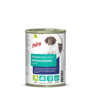 Prins NatureCare Diet Dog Hypoallergenic Lamb is een natvoeding speciaal voor honden met huid- en vachtproblemen door een voedselovergevoeligheid en/of ter ondersteuning van maagdarmproblemen. Deze speciale dieetvoeding is ontwikkeld in samenwerking met dierenartsen en bevat één eiwitbron en koolhydraatbron die een verminderde kans op een overgevoeligheidsreactie geven.