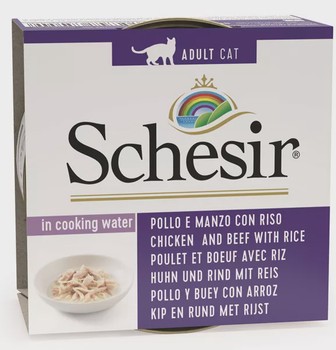 Schesir cat 85gr - kip & rund rijst (bouillon)